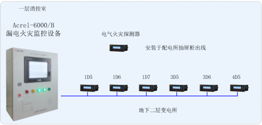 交通飯店有一個變電所,位于地下二層。變電所負責負一層超市以及地上樓層部分的用電?,F(xiàn)為本項目設計一套漏電火災系統(tǒng),由此來實時監(jiān)測變電所內重要回路的漏電流,以確保變電所配電系統(tǒng)的電氣安全。