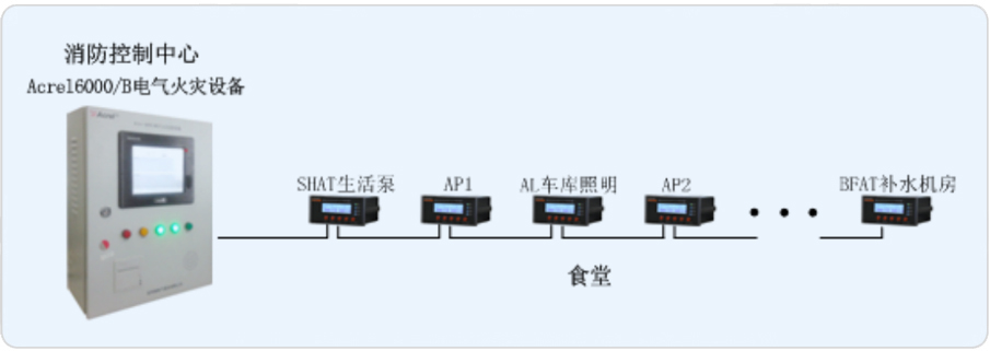 新食堂為地上三層、地下一層,占地面積約為2100平方米,地上建筑面積約為6300平方米。我司承接其電氣火災系統的搭建,對安裝于食堂樓層配電箱進線處的ARCM200系列剩余電流火災探測器設計一套Acrel-6000/B電氣火災系統,由此來實時監測樓層內重要回路的漏電流,以確保變電所配電系統的電氣安全。